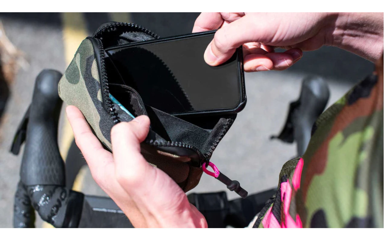 The tough outer camo fabric is lined with a water-repellent zipper that offers protection for your essential cycling accessories, with a heavy-duty rubber-encased rope zip pull for quick and easy access on the bike. The Molle Webbing straps on the back of the case make it easy to attach to other Molle accessories or bags.